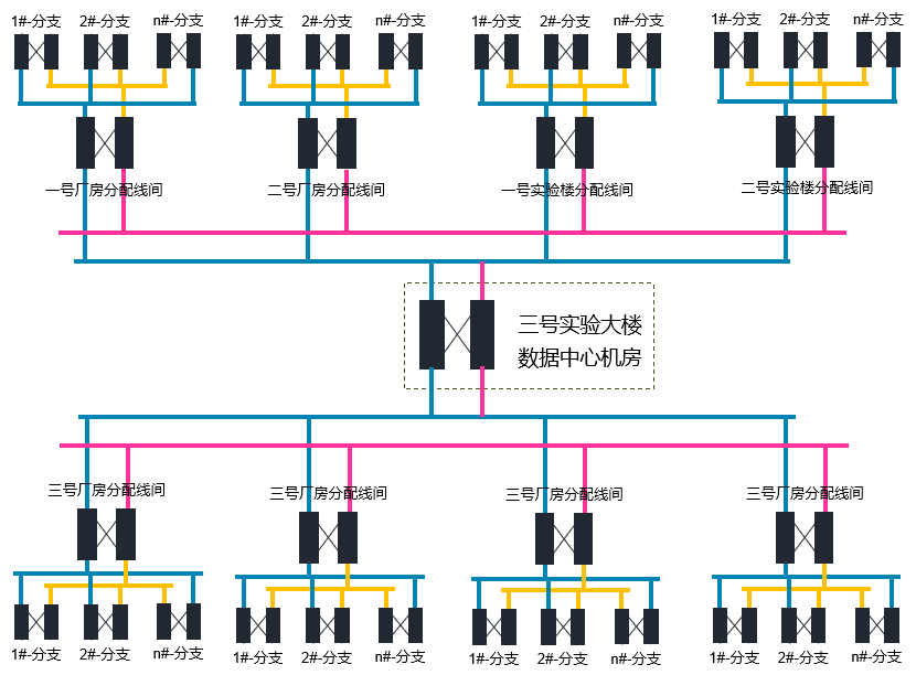 1、數據中心機房至匯聚中心至各樓棟分支機柜采用大對數電纜